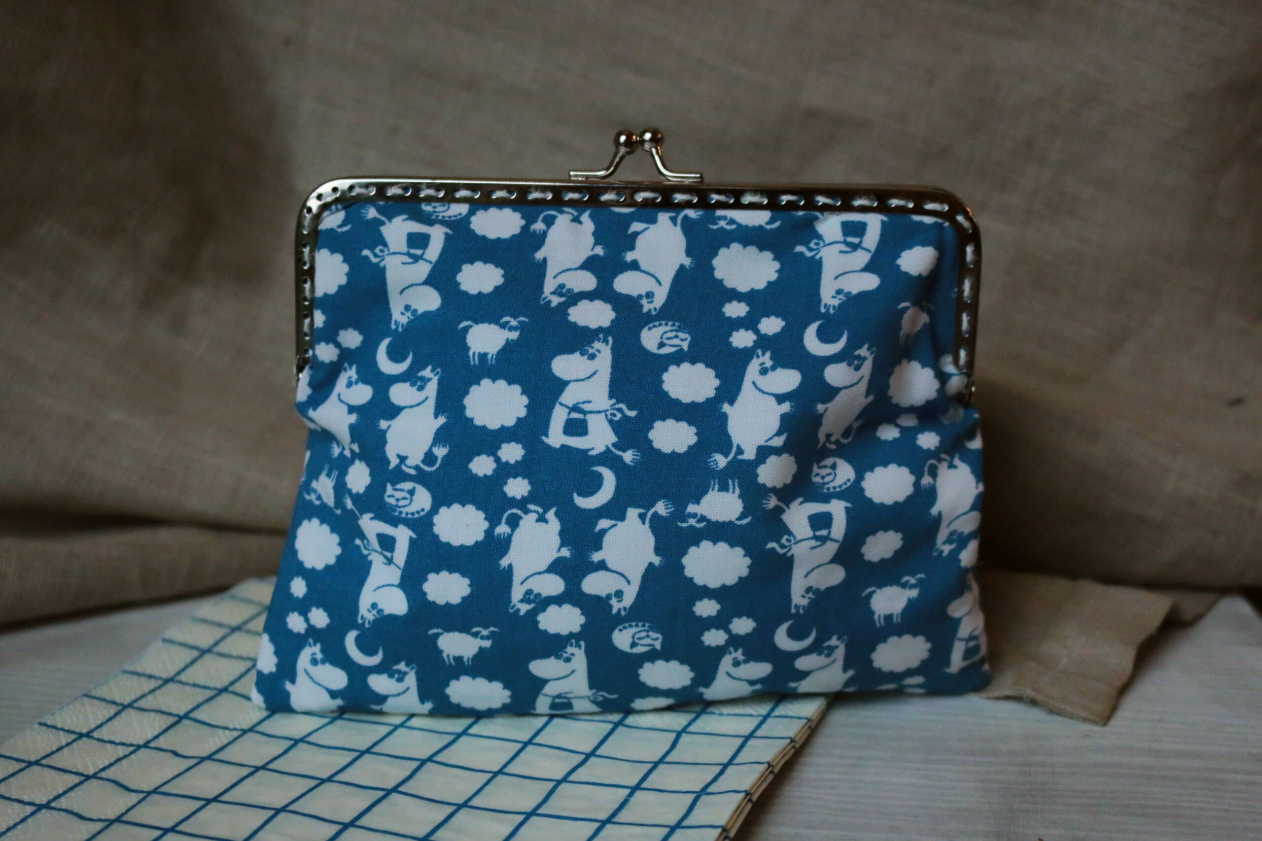Duża,ciemno niebieska saszeta która pomiesci nie tylko kilka drobnych monet a spokojnie pomieści okulary, pomadkę, telefon, słuchawki, klucze. Niezbędnik w torebce i jedyna w swoim rodzaju. Wspaniały prezent dla bliskiej osoby. Cała saszeta jest szyta ręcznie, wewnątrz podszewka i lekkie usztywnienie by rzeczy w niej przechowywane były bezpieczne.  szerokość -16cm wysokość 12cm
