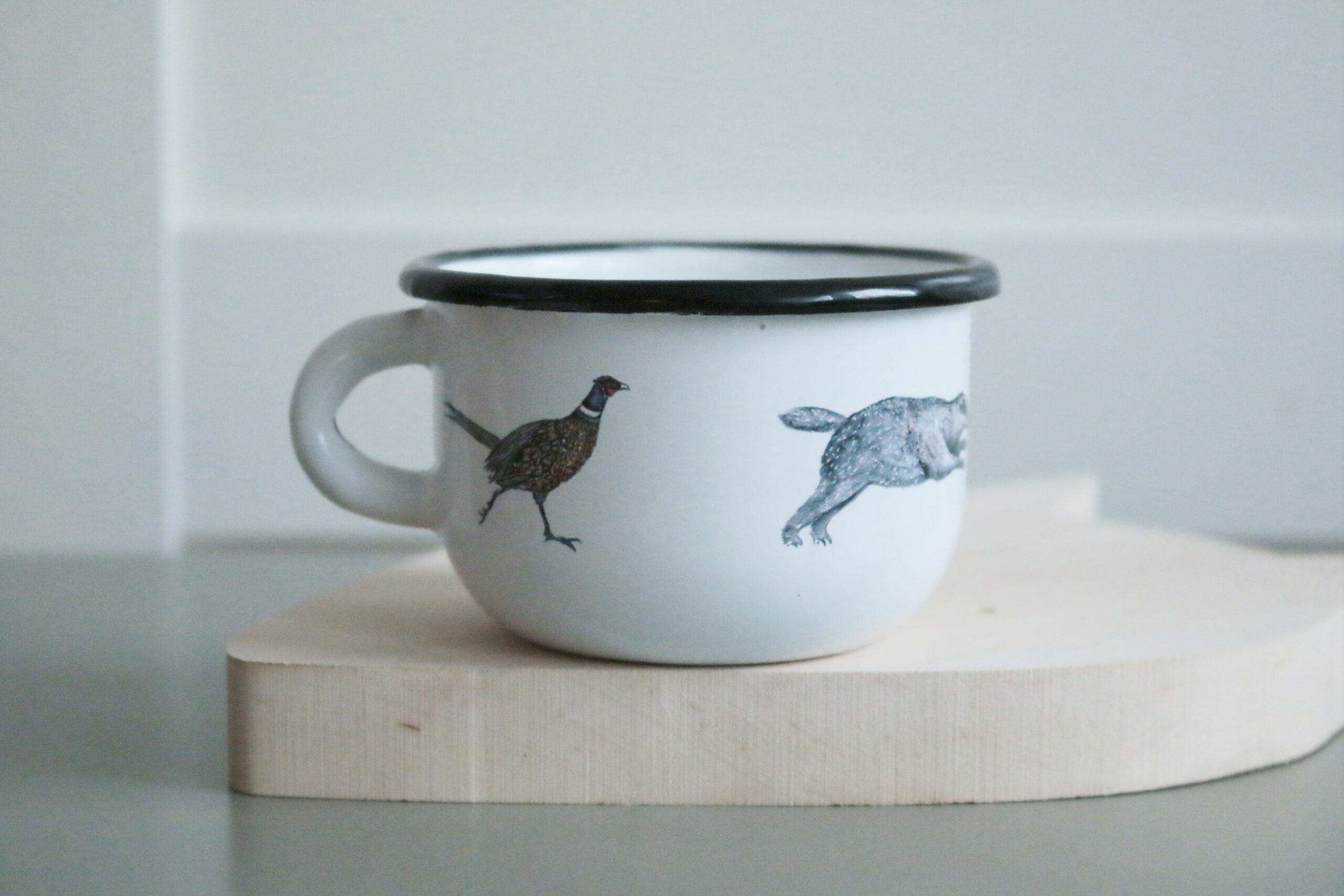 Pierwsza na rynku emaliowana filiżanka o pojemności 250ml (pojemność klasycznej szklanki) z naszym rysunkiem Under The Moss. Dookoła filiżanki biegnie bażant, borsuk, zając i wiewióra. Można tak jak emaliowany kubek przypiekać na ognisku jak również używać w nowoczesnej kuchni na kuchence indukcyjnej lub elektrycznej. Polecamy z czystym sumieniem. Wszystko zdobione ręcznie w naszej pracowni. średnica kubka…