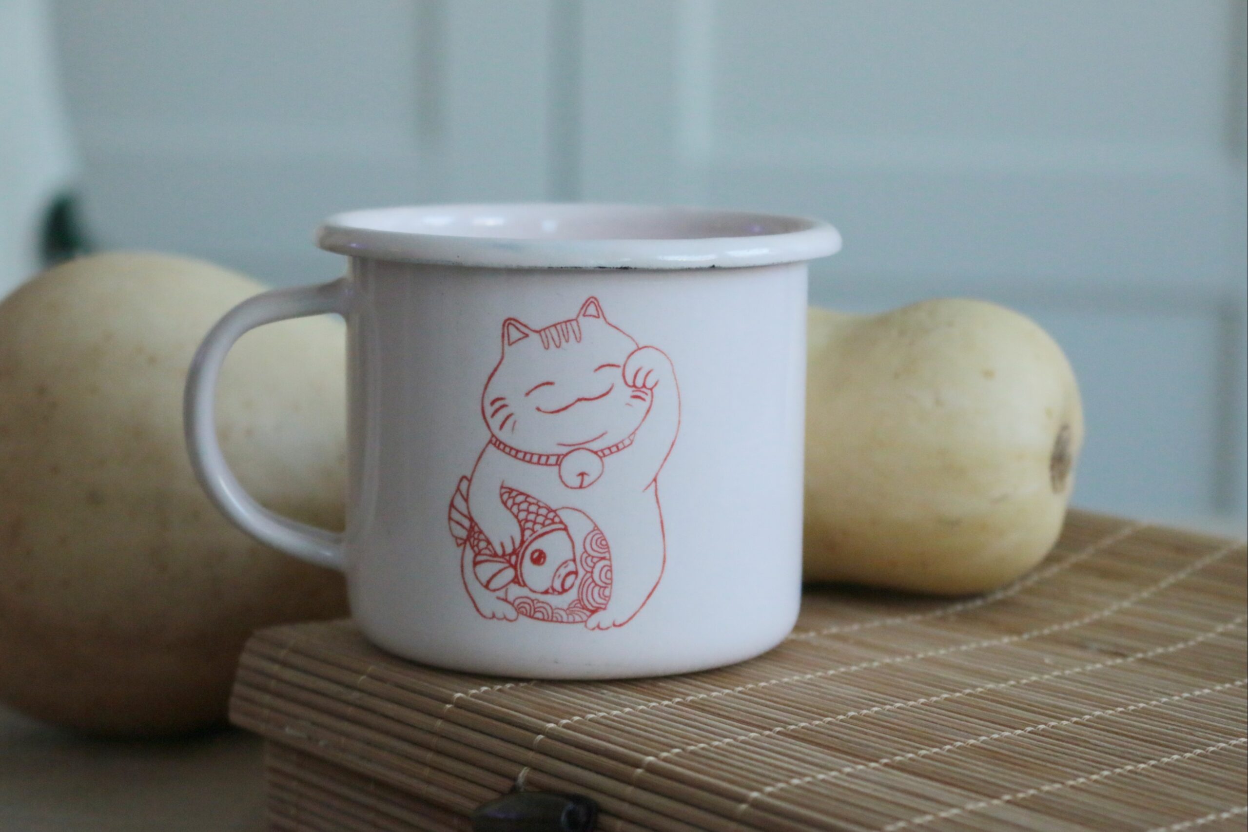 Ręcznie zdobiony kubek emaliowany w przepięknym, robionym na zamówienie kolorze różowy kwarc. Emalia bardzo wysokiej jakości produkcji polskiej. Dekorowany i wypalany w naszej krakowskiej pracowni. W góry, daleką podróż, na kakao zimą, niezbędnik w kuchni do małego gotowania (np jajek na miękko) mniej tłukący niż porcelana i nadający się na wszystkie kuchenki (w tym indukcyjną również!) średnica ok 8…