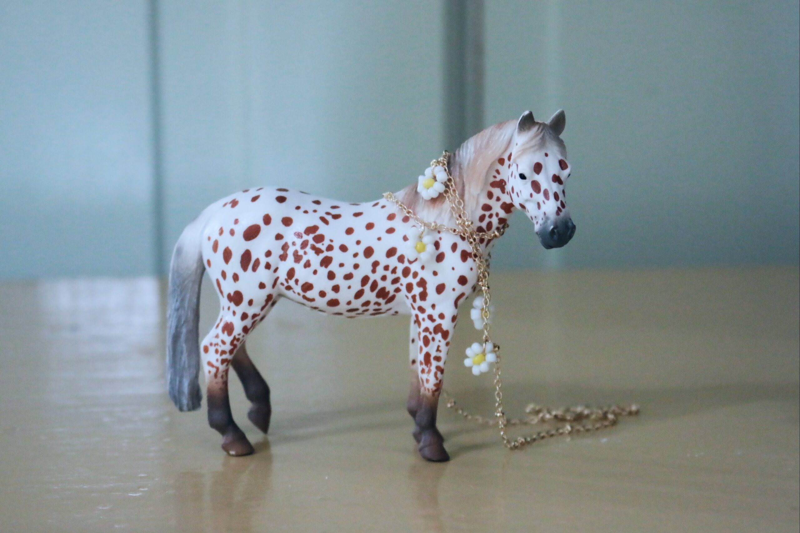 Naszyjnik ze stokrotkami. Zrobiony skrupulatnie z maleńkich koralików i nici. Zapakowany w śliczne pudełko z aksamitną poduszeczką. Piękny prezent i wysokiej klasy biżuteria tylko od Poppy Cox ps. Figurek nie ma w zestawie
